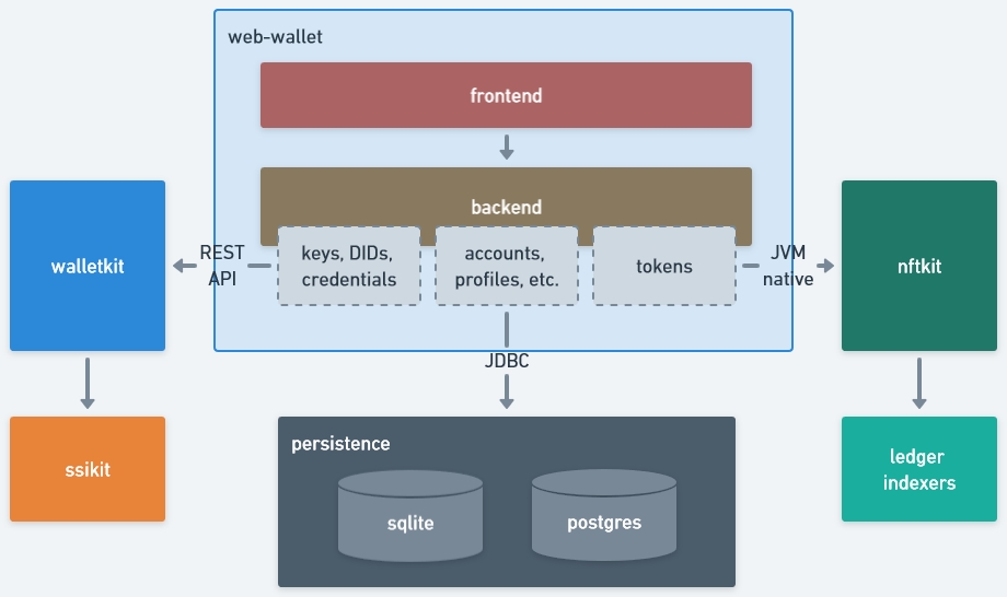 frontend - customer facing user interface that enables user interaction with wallet's main functions